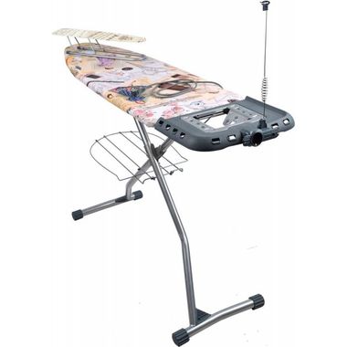 Достоинства: Мощная конструкция, жестко стоит даже с утюгом-парогенератором с полным баком